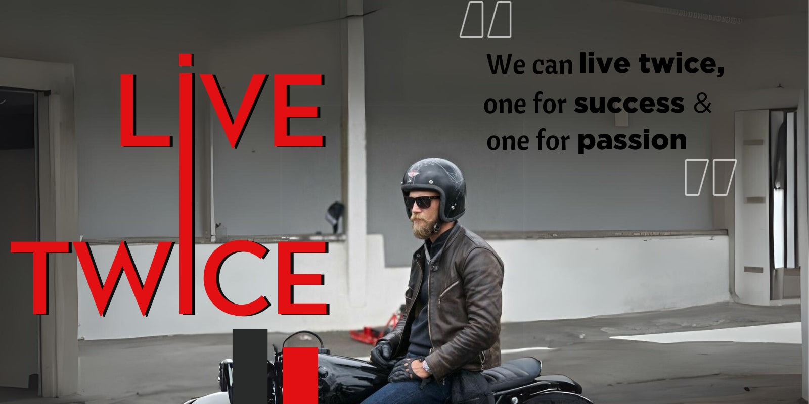 Discover 'Live Twice' – Your Journey Awaits! Embrace the thrill of the open road while excelling in your everyday life. Our motorcycle fashion inspires where success and passion unite. Elevate your style and unleash your inner biker with us!